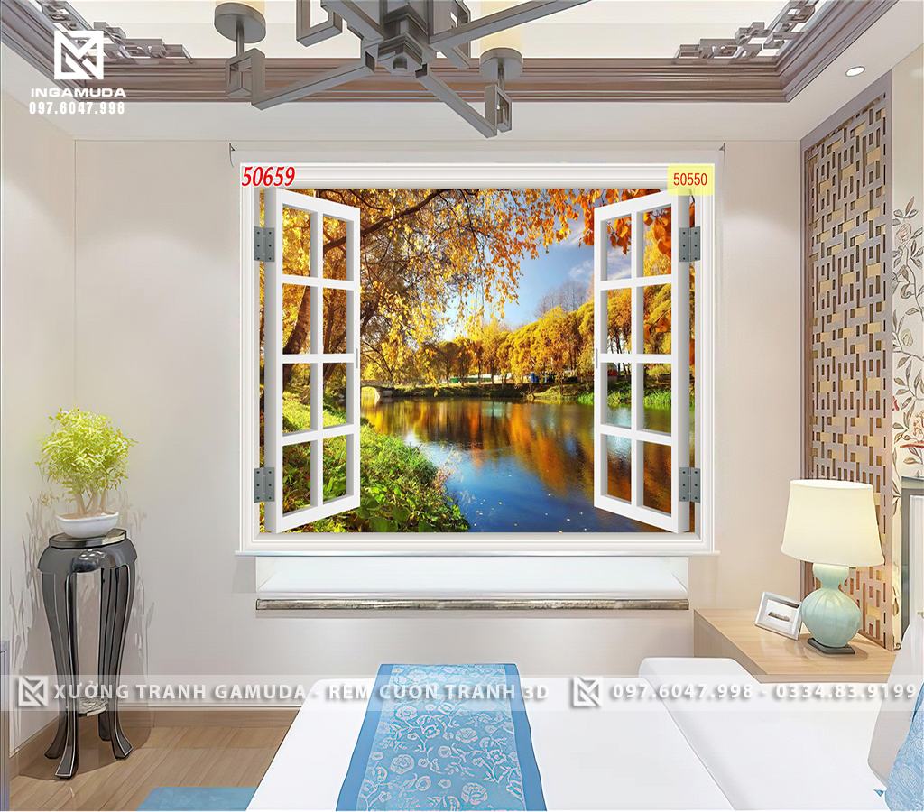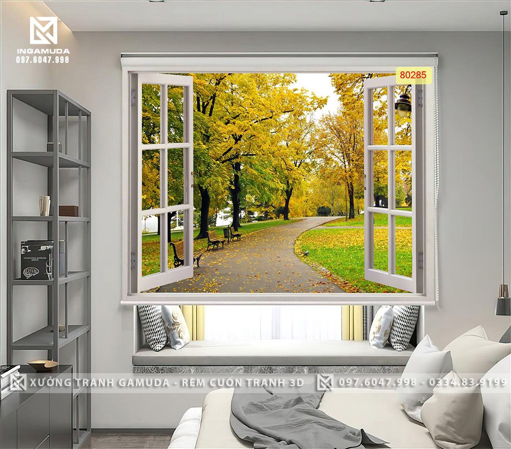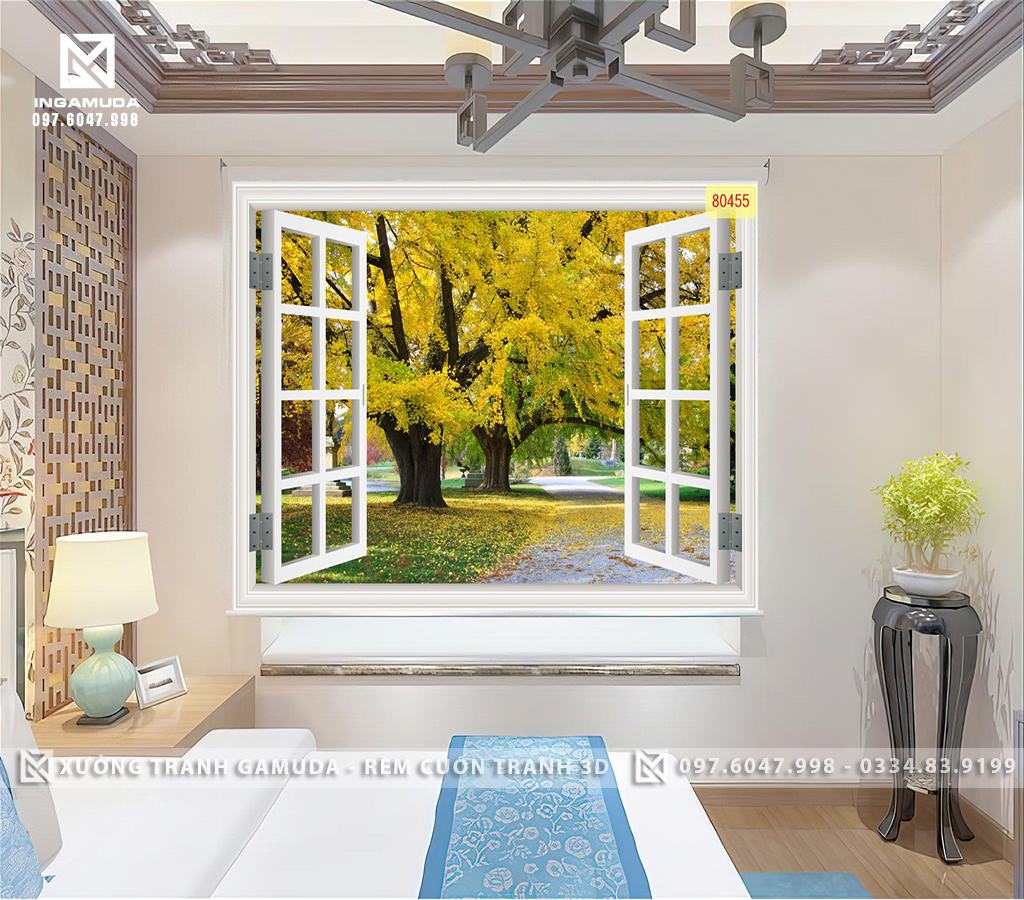 Rèm Cuốn Tranh 3D Cửa Sổ Mùa Thu