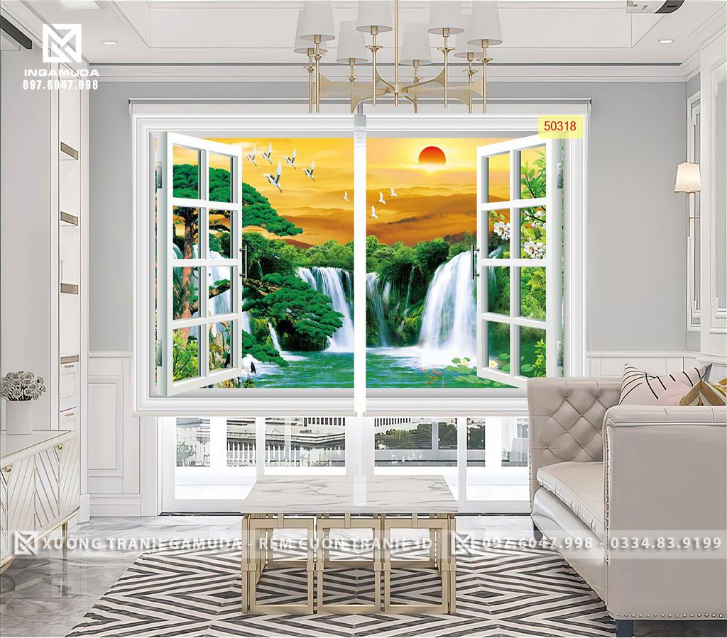 Rèm Cuốn Tranh 3D Cửa Sổ Sơn Thủy