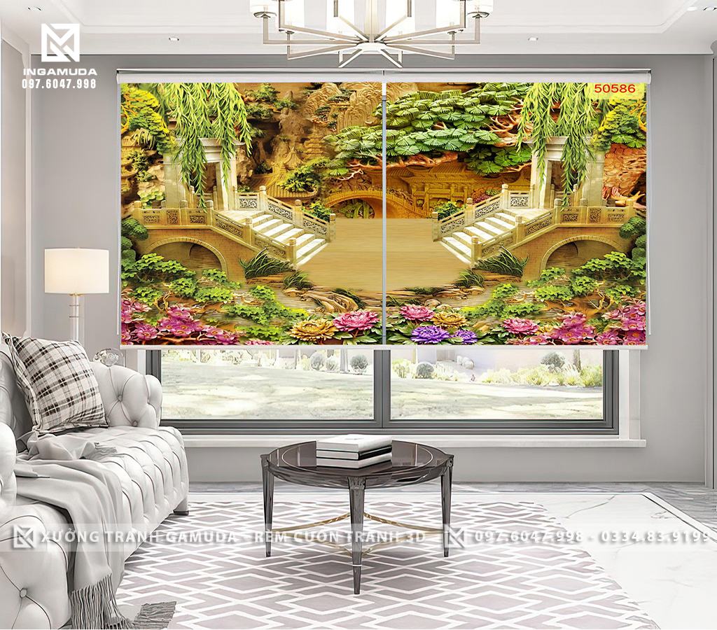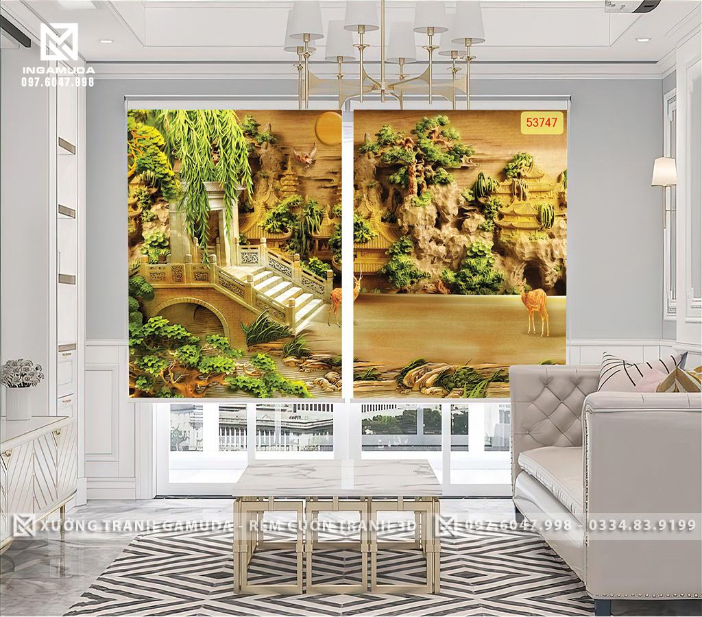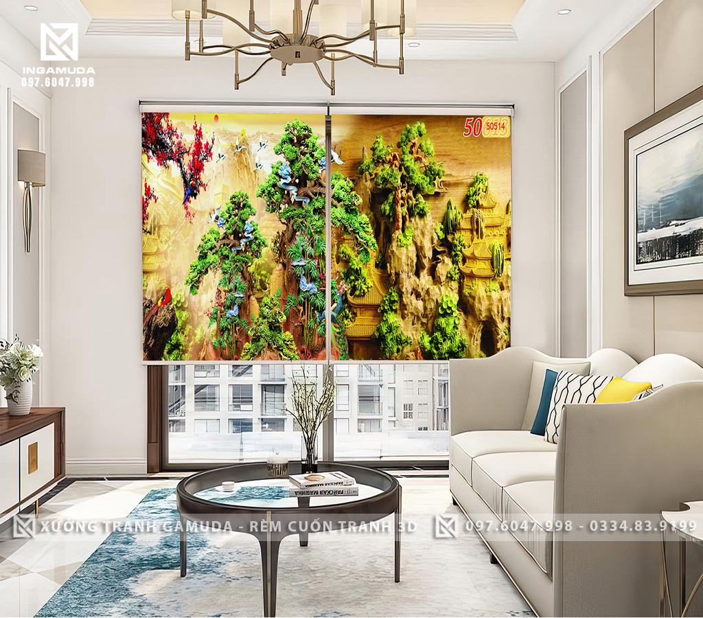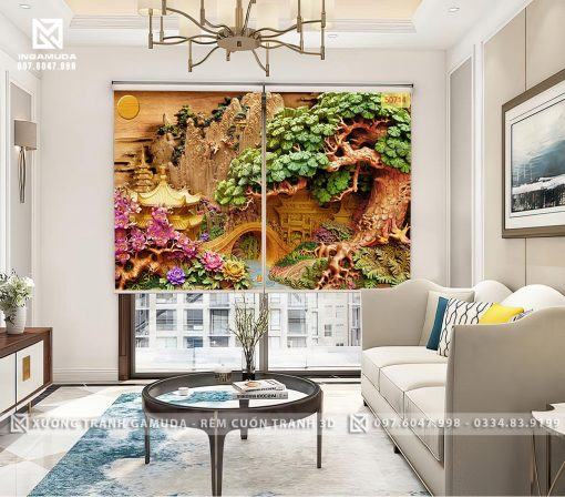 Rèm cuốn là loại rèm được thiết kế dạng cuộn, được treo trên cửa sổ hoặc cửa ra vào của một không gian. Tranh 3D in điêu khắc cây tùng là một trong những mẫu tranh 3D đẹp và sang trọng được nhiều người yêu thích. Rèm cuốn tranh 3D in điêu khắc cây tùng có thiết kế độc đáo, được in ấn trên chất liệu vải chất lượng cao, mang đến cho không gian sống của bạn một vẻ đẹp hoàn toàn mới lạ. Ngoài ra, tranh 3D in điêu khắc còn là một trong những mẫu tranh được yêu thích nhất hiện nay với độ sắc nét, chi tiết và chân thực.