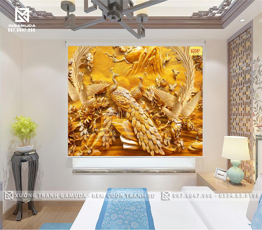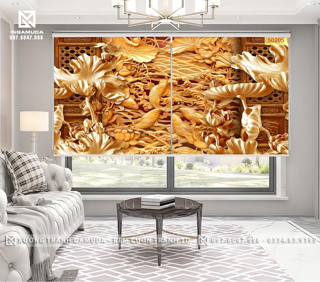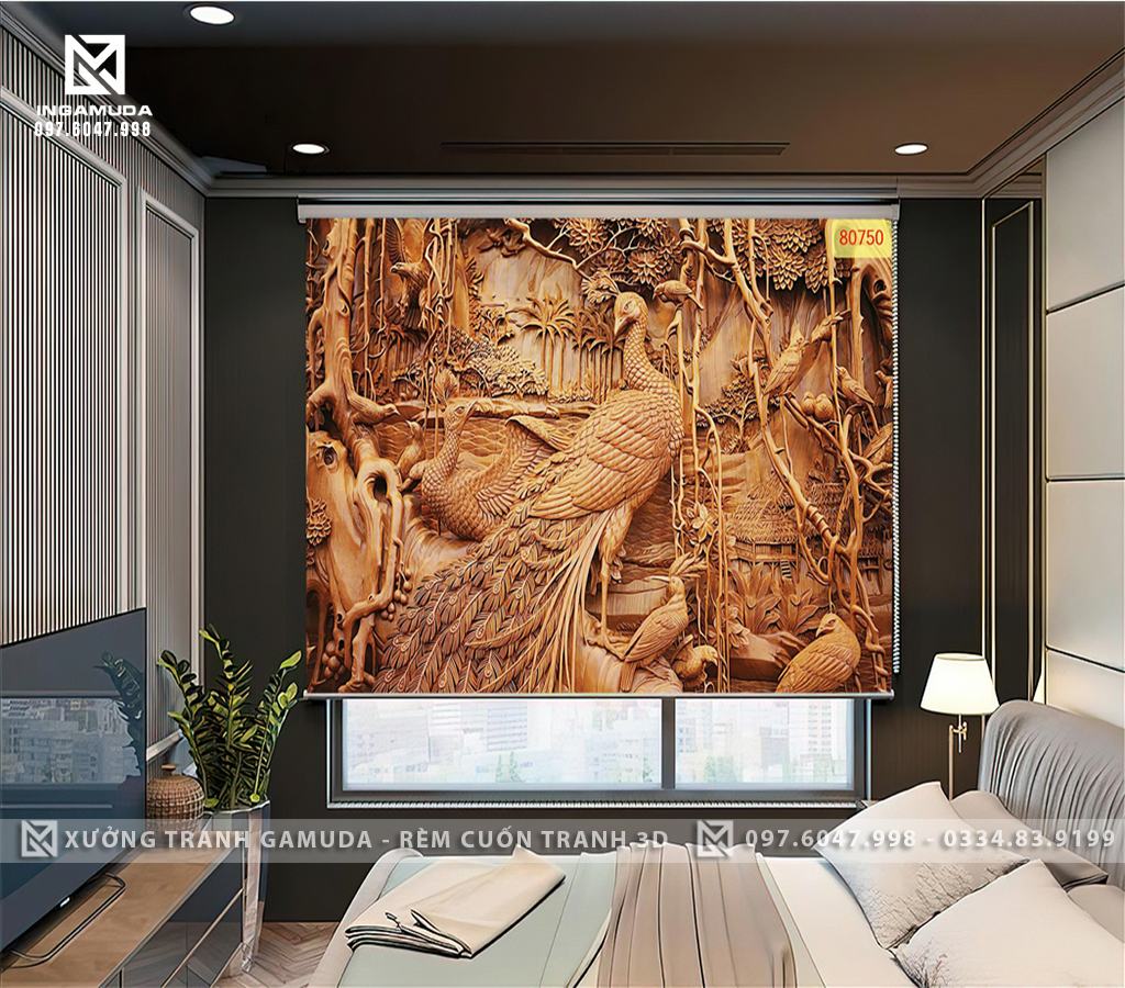 RÈM CUỐN TRANH ĐIÊU KHẮC