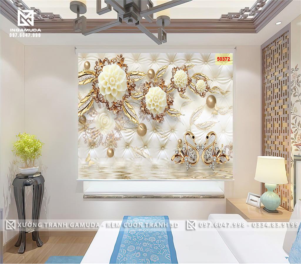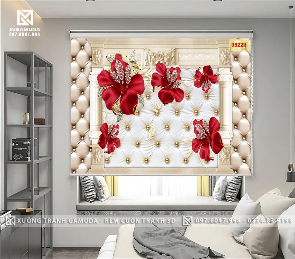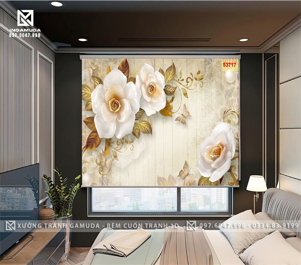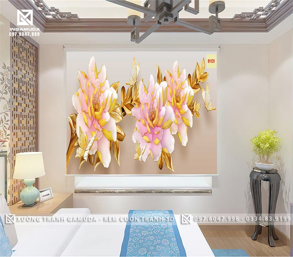 Rèm Cuốn Tranh 3D In Hình Những Bông Hoa Sang Trọng – Rèm Gamda Sản Xuất Giá Tốt Nhất