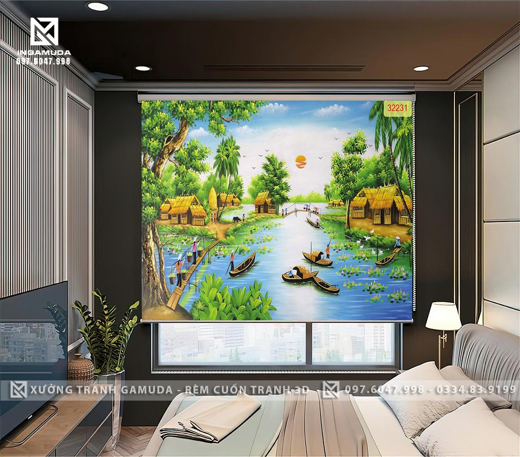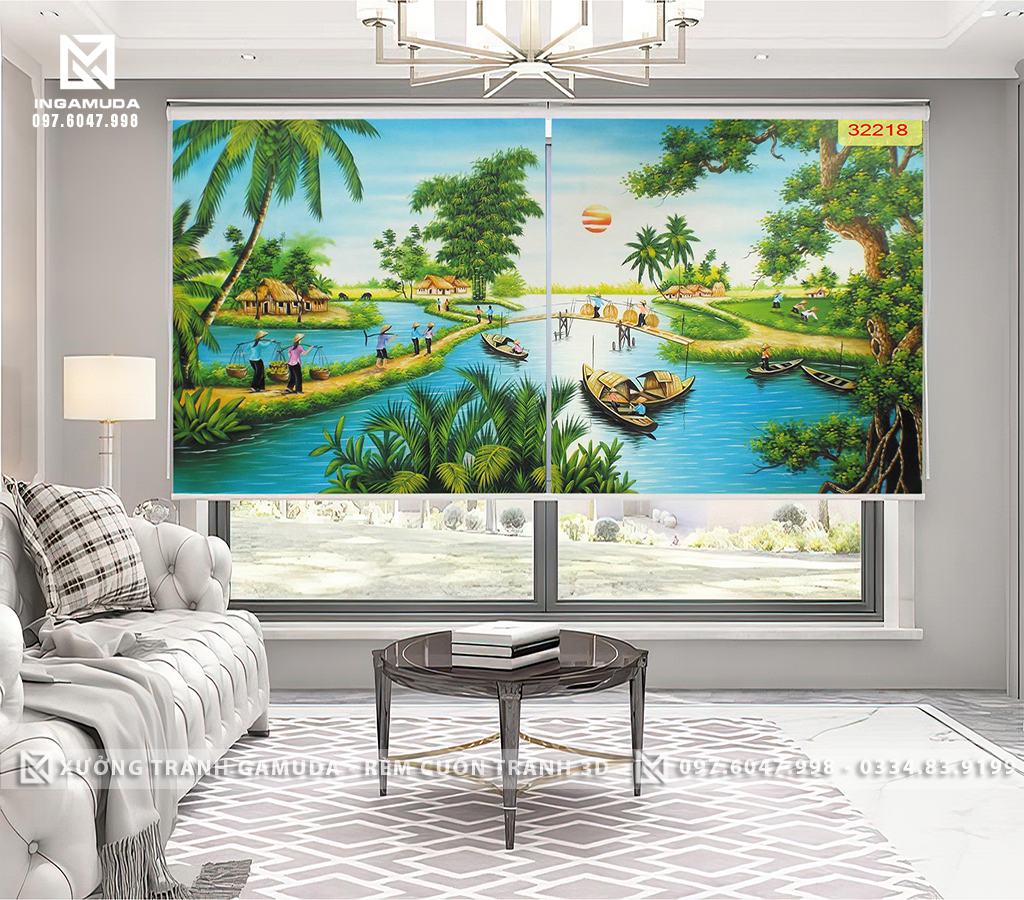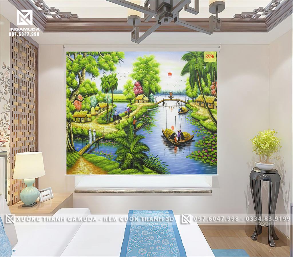 Sản Xuất Rèm Cuốn Tranh 3D In Họa Tiết Con Sông Quê Đẹp Nhất