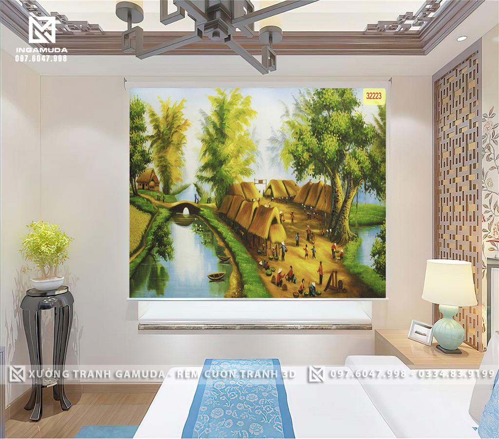 RÈM CUỐN TRANH ĐỒNG QUÊ