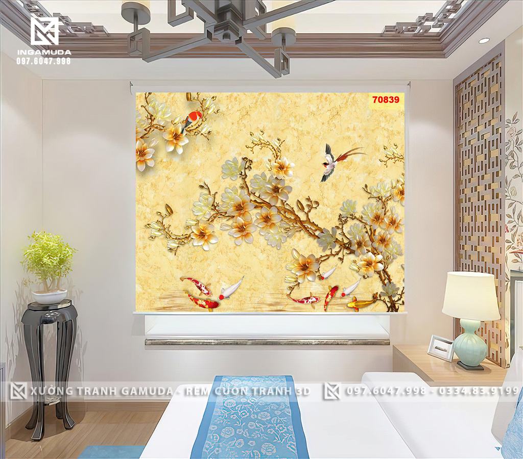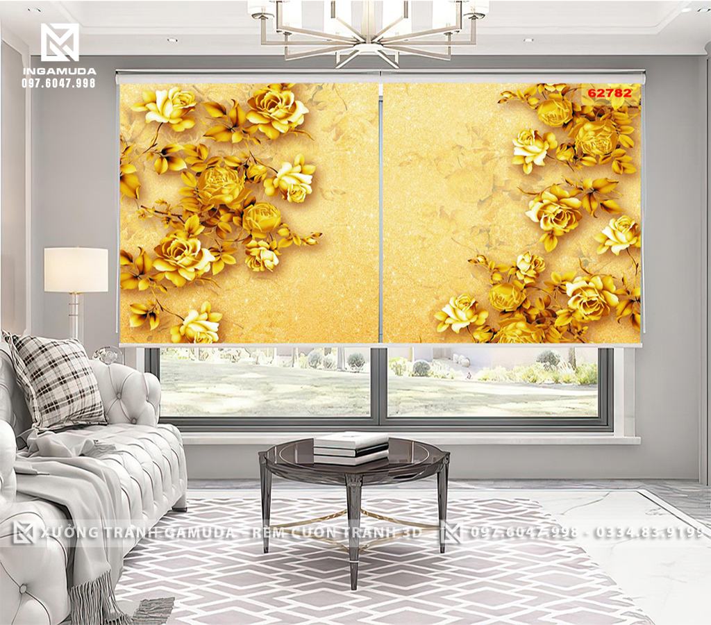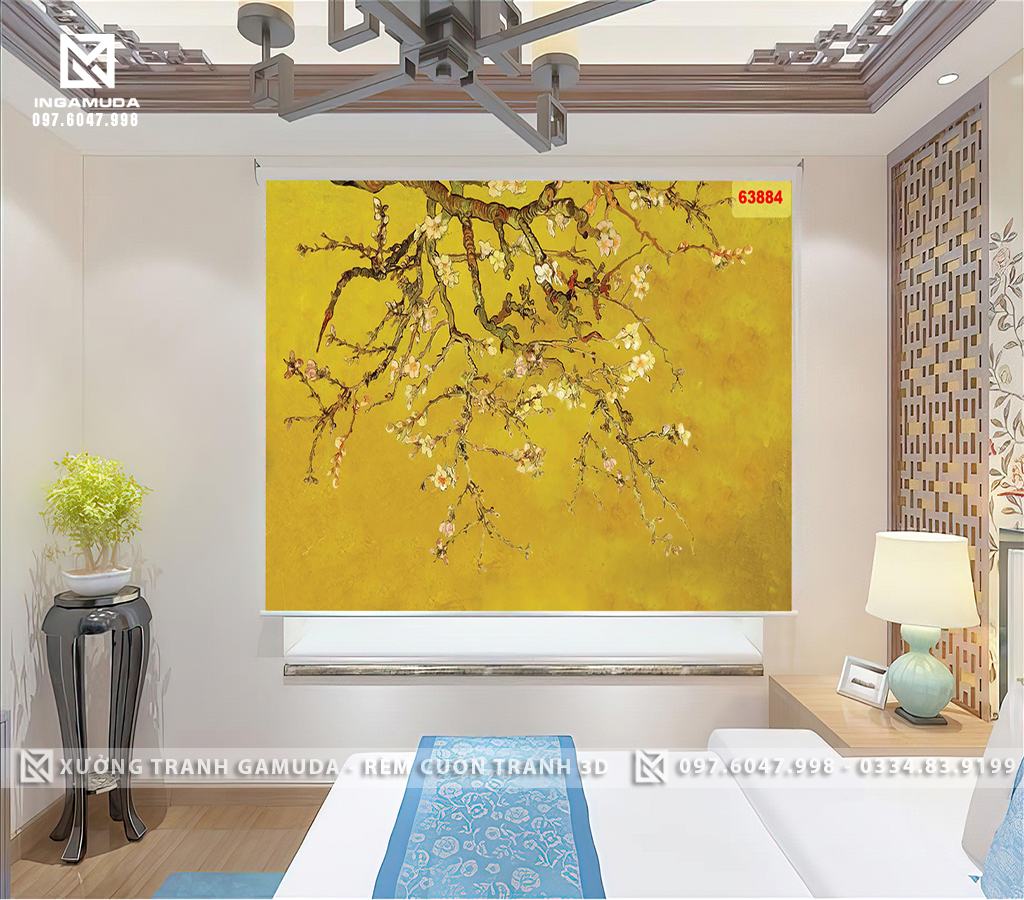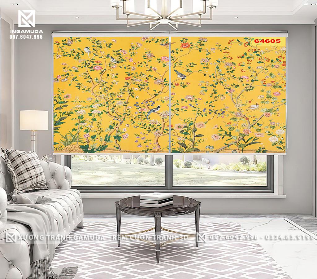 Rèm Cuốn Tranh 3D In Họa Tiết Indochine Màu Vàng Đẹp Nhất