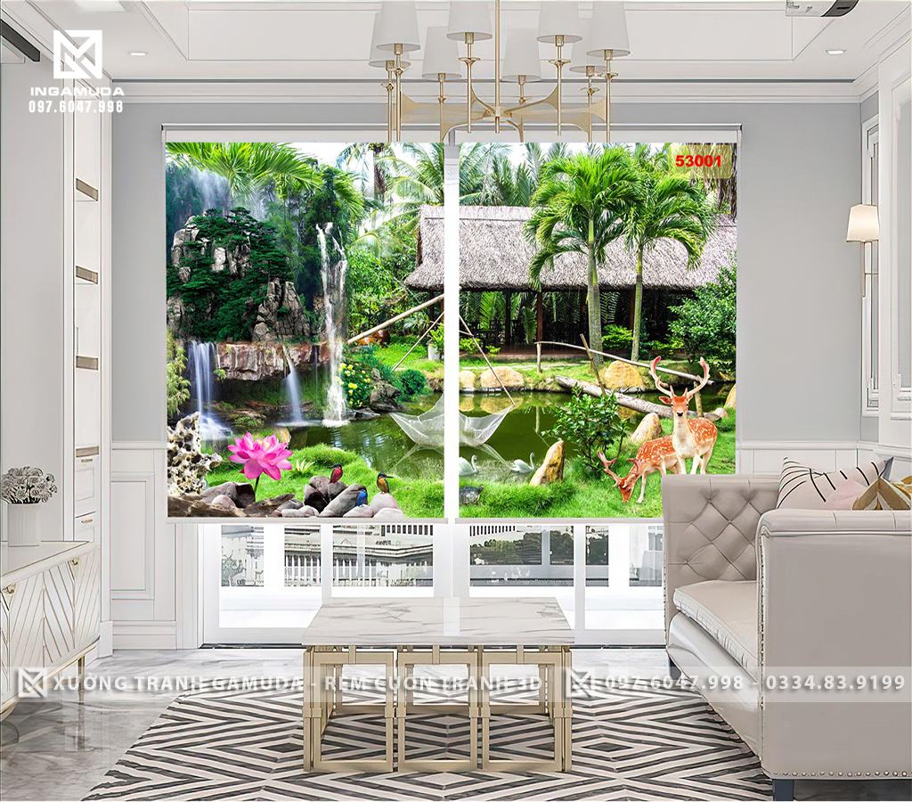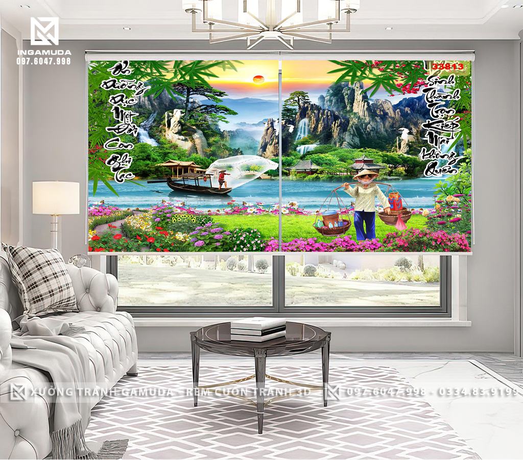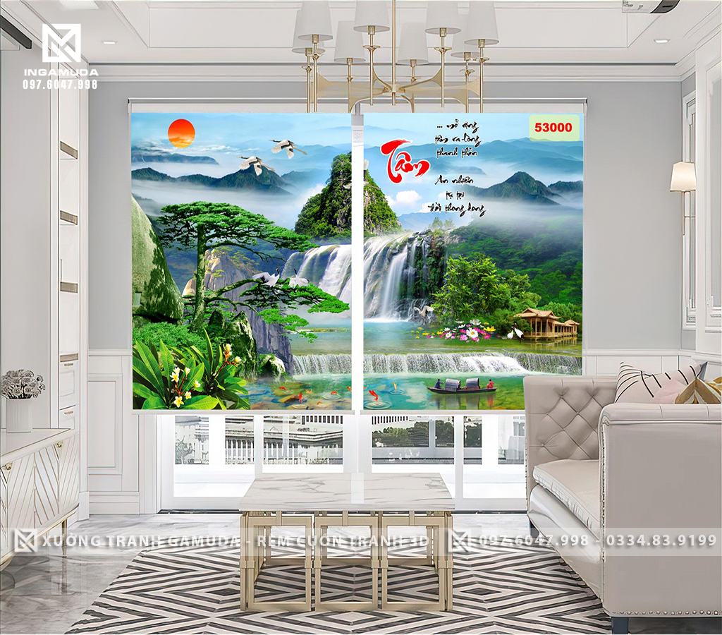 Rèm Cuốn Tranh 3D In Phong Cảnh Sơn Thủy Hữu Tình Có Ý Nghĩa May Mắn Vượng Khí Tài Lộc