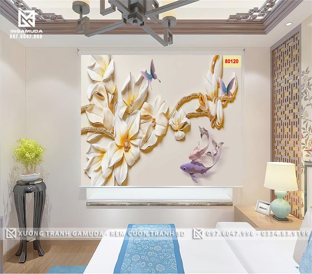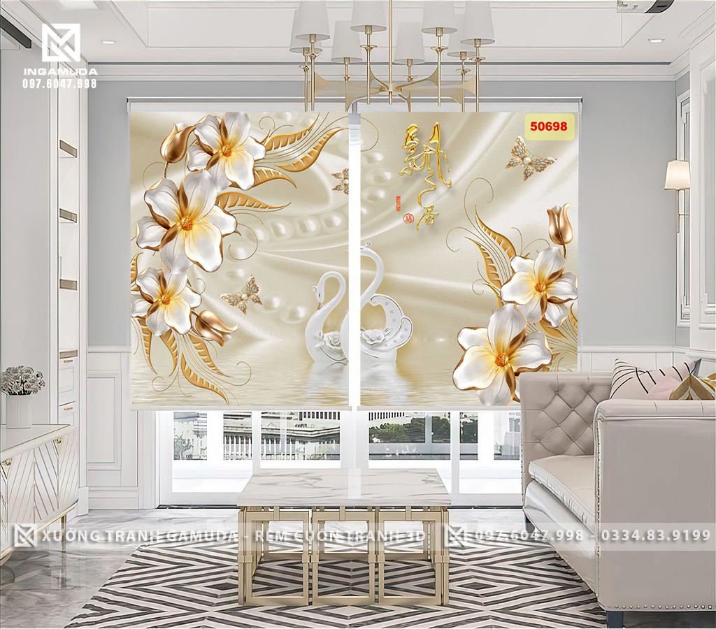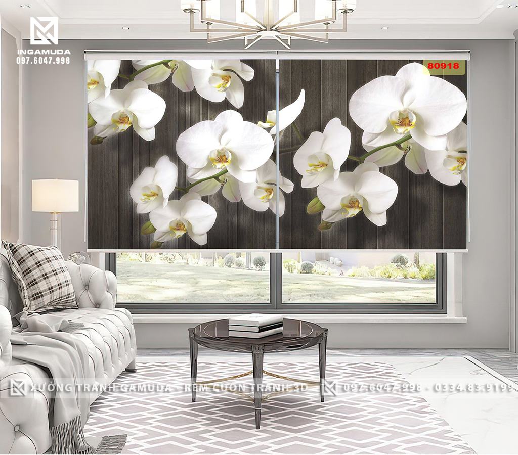 Rèm Cuốn Tranh In 3D Họa Tiết Hoa Lan Đẹp Và Sang Trọng