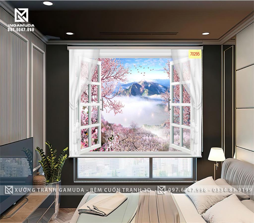 Gần Gũi Với Thiên Nhiên: Rèm cuốn In phong cảnh bên ngoài cửa sổ mang lại cảm giác gần gũi với thiên nhiên và thế giới bên ngoài, giúp không gian sống trở nên rộng rãi và thoáng đãng hơn thông qua rèm cuốn in hình cừa sổ.