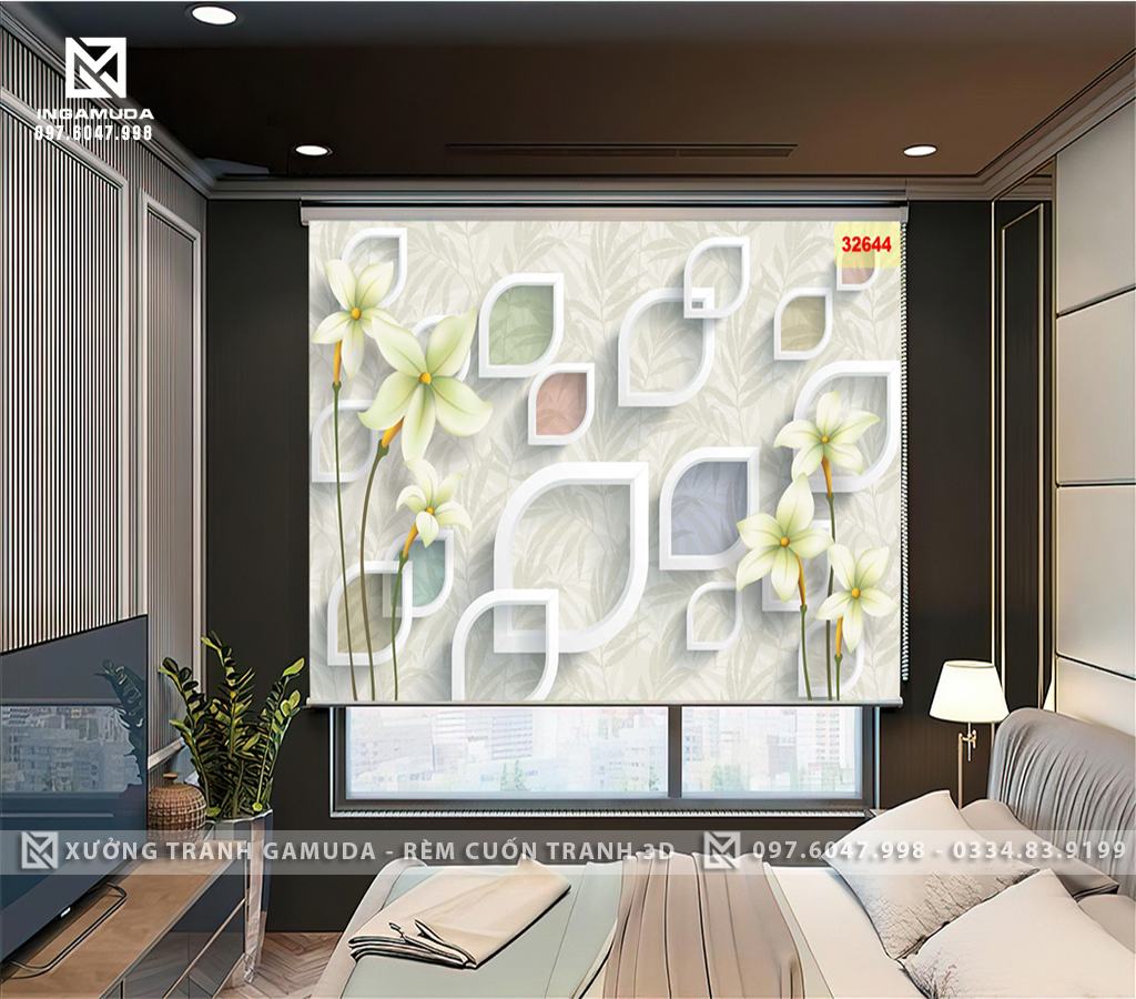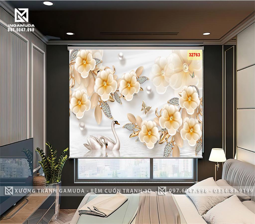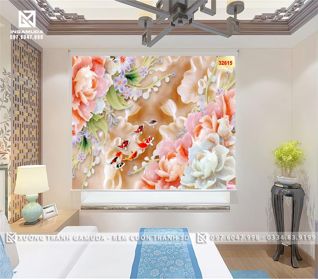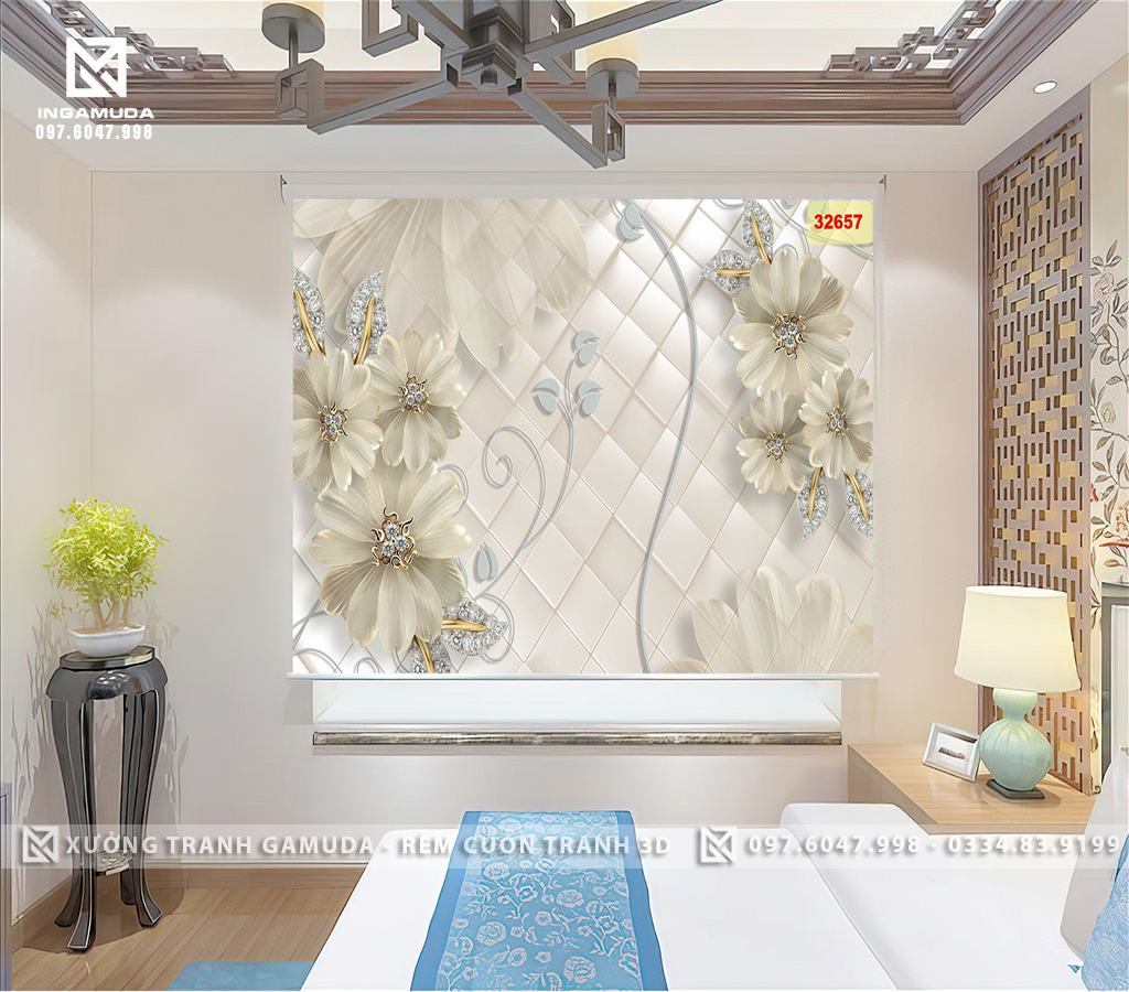 Rèm Cuốn Tranh In Họa Tiết Hoa 3D Trên Nền Ngọc Đẹp Nhất