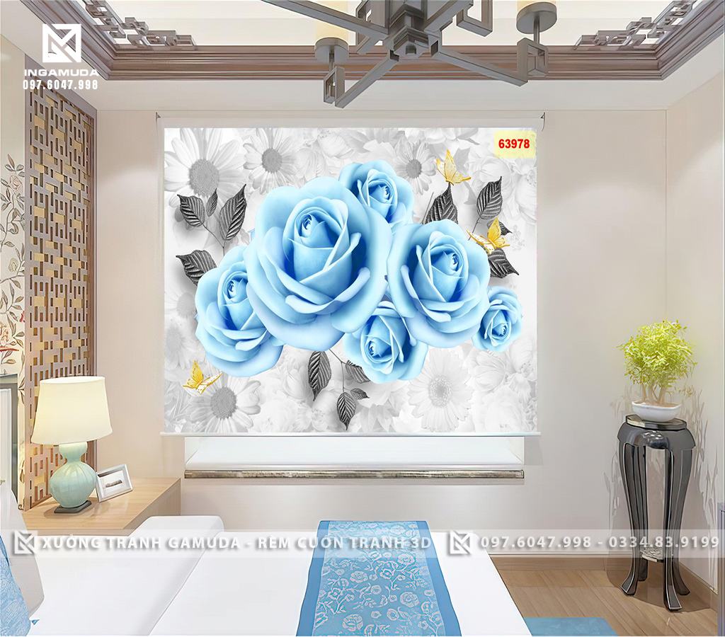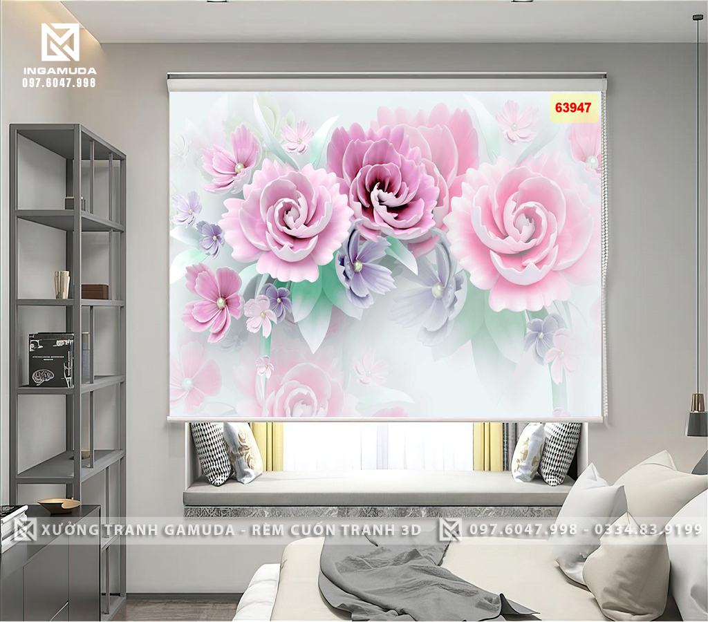 Rèm Cuốn Tranh In Họa Tiết Hoa Hồng 3D Đẹp Nhất