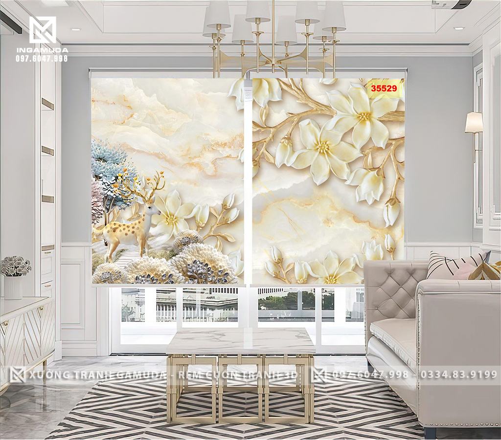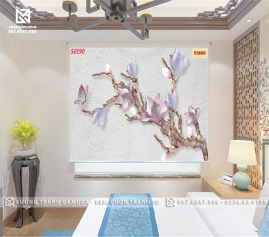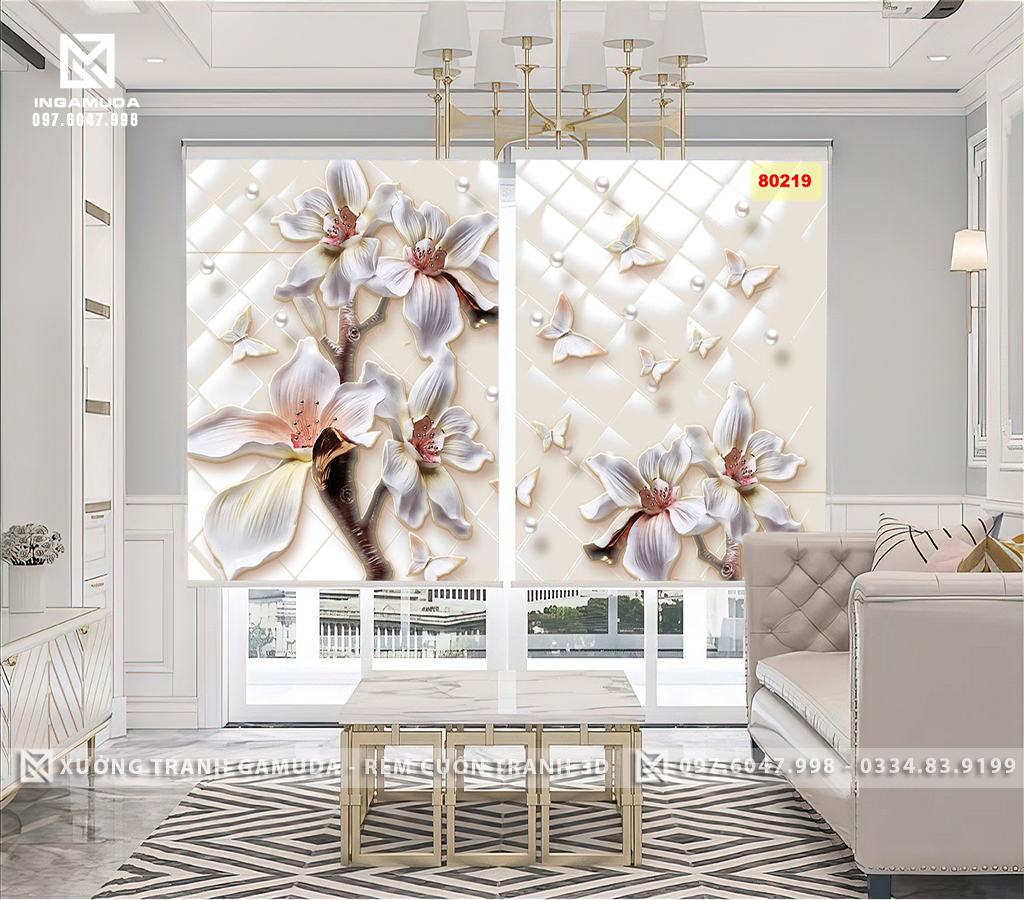 Rèm Cuốn Tranh In Họa Tiết Hoa Mộc Lan Đẹp Nhất