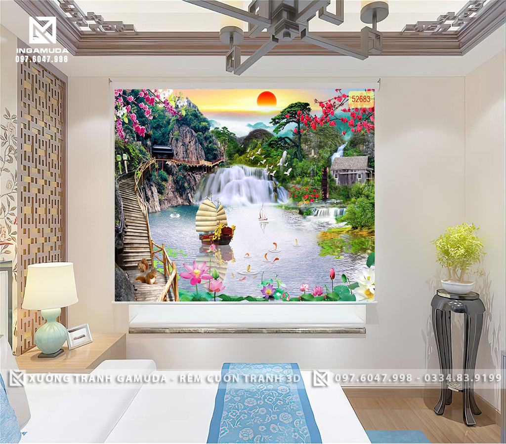Xưởng in Gamuda sử dụng công nghệ in ấn tiên tiến và mực in UV chất lượng khô ngay lập tức, đảm bảo màu sắc trung thực, sắc nét và độ bền cao cho sản phẩm rèm cuốn tranh của bạn.