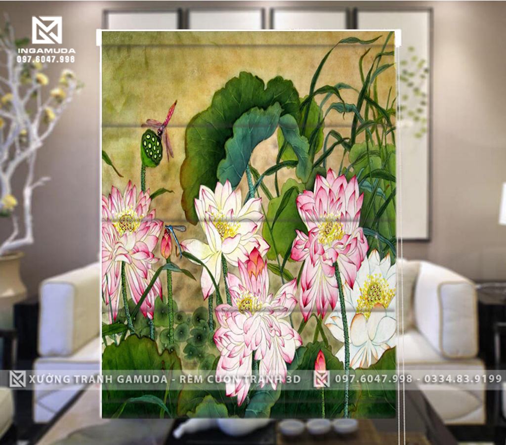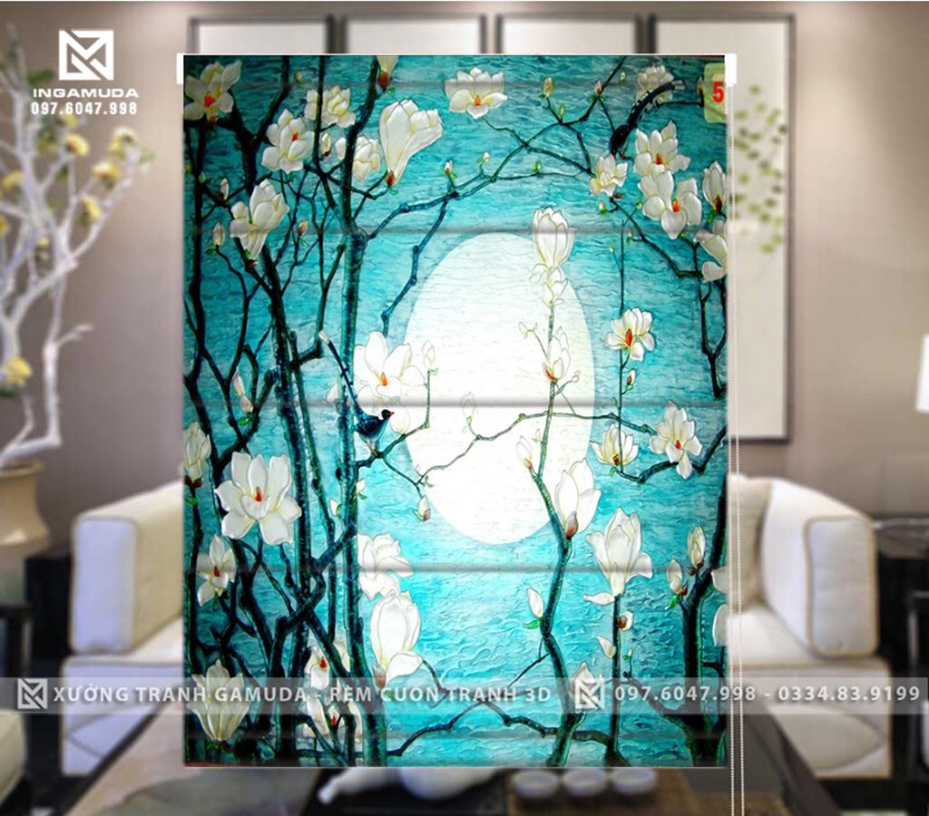 Rèm Roman Họa Tiết In 3D Thiết Kế Tại Xưởng Rèm Gamuda