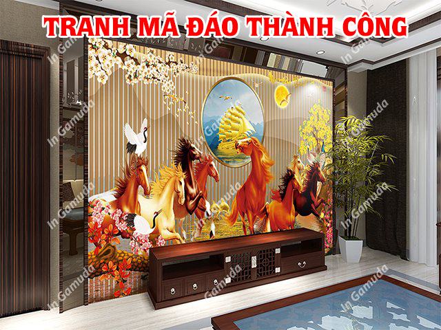 Tranh mã đáo là một loại tranh trang trí phòng khách mang ý nghĩa phong thuỷ đặc biệt. Tranh này thường được treo ở vị trí phòng khách như một cách để thu hút may mắn và tài lộc vào nhàTrong tranh mã đáo, ngựa thường được vẽ với những chi tiết tinh tế và chân thực. Con ngựa được coi là một biểu tượng của sự nhanh nhẹn, dũng cảm và sự phát triển. Ngựa cũng thường được xem là một loài động vật linh thiêng, từ xa xưa người ta đã tin rằng sự hiện diện của ngựa có thể mang lại may mắn và tài lộc.Tranh mã đáo thành công luôn là một nguồn cảm hứng vô tận cho những người muốn đạt được thành công trong cuộc sống của mình. Được in ấn tại xưởng in Gamuda, nơi nổi tiếng với chất lượng hàng đầu và uy tín của mình, tranh mã đáo thành công trở thành một tác phẩm nghệ thuật đẹp mắt, mang lại niềm tin và động lực cho mọi người trong cuộc sống.Không chỉ là một bức tranh trang trí đẹp mắt, tranh mã đáo thành công còn là một hình ảnh truyền cảm hứng, nhắc nhở mọi người về quyết tâm và nỗ lực trong cuộc sống. Với sự kết hợp hoàn hảo giữa in ấn chất lượng hàng đầu của Gamuda và ý nghĩa sâu sắc của tranh mã đáo thành công, tác phẩm này không chỉ là một món đồ trang trí, mà còn là một biểu tượng của mục tiêu và khát vọng.Ý nghĩa của tranh mã đáo thành công mang tính chất lịch sử và sâu sắc. Nó tôn vinh sự kiên nhẫn, quyết tâm và sự cân nhắc của con người trong việc đối mặt với thách thức và đạt được thành công. Nó được coi là một biểu tượng hỗ trợ cho những ai cần sự động viên và cảm hứng để vượt qua khó khăn trong cuộc sống.Ngoài ra, tranh còn có tầm ảnh hưởng lớn đối với lĩnh vực kinh doanh và lãnh đạo. Nó nhắc nhở rằng để đạt được thành công không chỉ đòi hỏi sự tài năng và nỗ lực, mà còn phải có sự kiên nhẫn và sự tấn công mục tiêu. Đó là hình ảnh của sự chú trọng mục tiêu, sự cứng rắn và sự hướng dẫn đúng đắn.Tranh mã đáo thành công là một trong những kiệt tác của nghệ thuật mà không chỉ làm phong phú thêm nguồn cảm hứng và niềm đam mê cho cuộc sống hàng ngày, mà còn mang ý nghĩa sâu xa về quyết tâm và ý chí mạnh mẽ trong việc đạt được thành công.